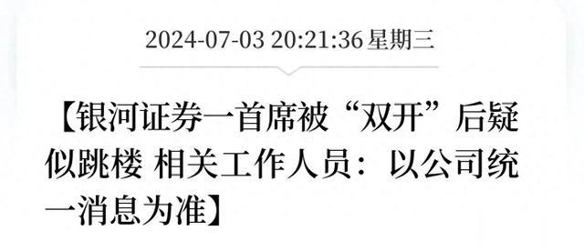 公司沉默:面对外界的沸沸扬扬,银河证券的回应只留下一句“以公司统一发布的消息为准”,让真相更加扑朔迷离。