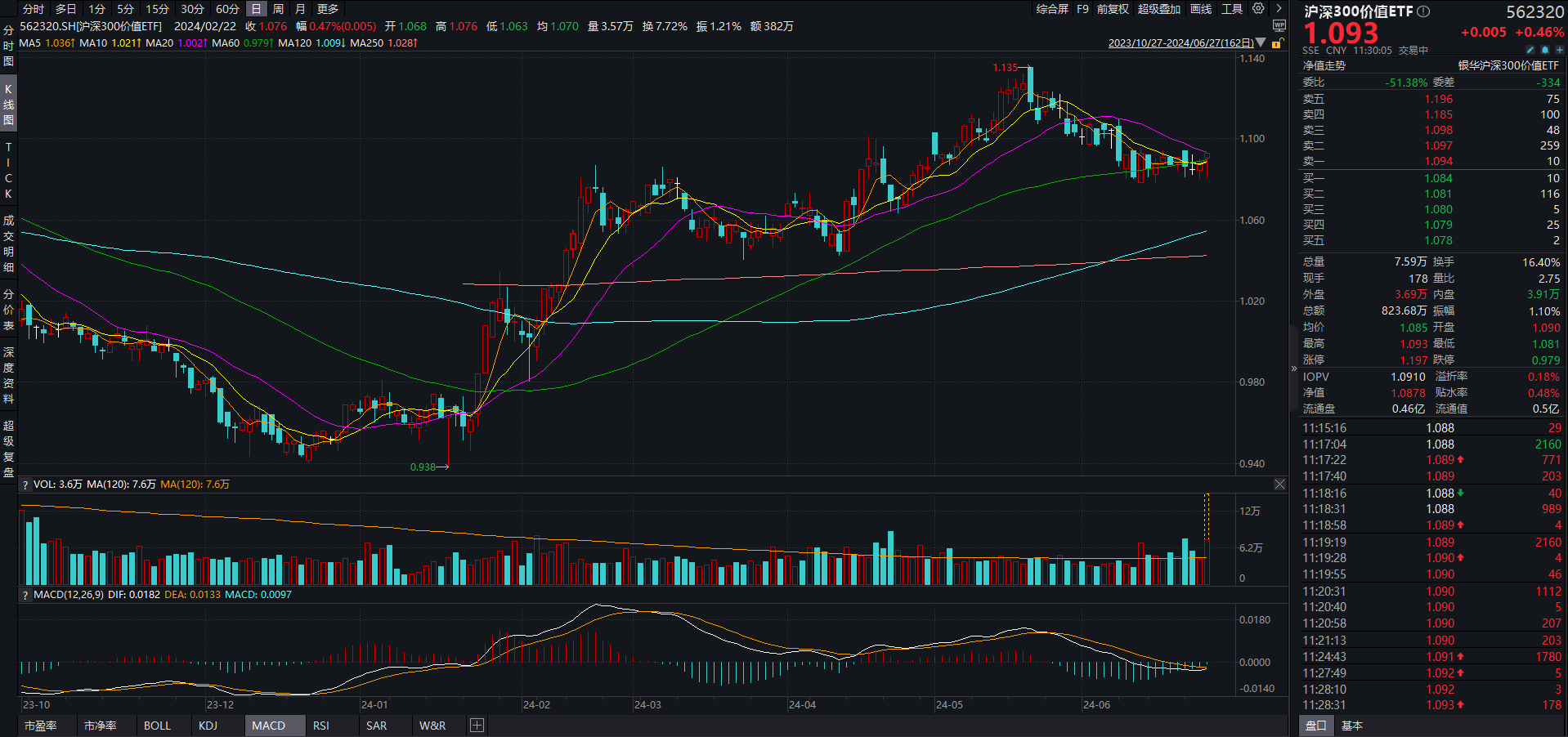 相关ETF方面,跟踪该指数的沪深300价值ETF(562320)收涨0.46%,半日成交额为824万元,换手率超16%,盘中交投十分活跃,此外溢折率为0.18%,溢价交易明显。